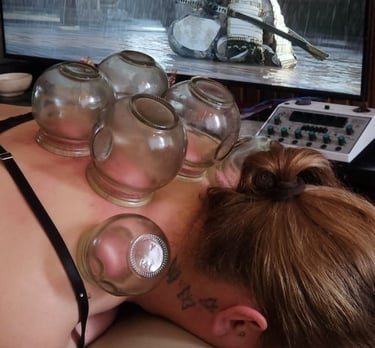 Alivia dor muscular e tensão. Aumenta a circulação local e elimina toxinas com o vácuo das ventosas.
